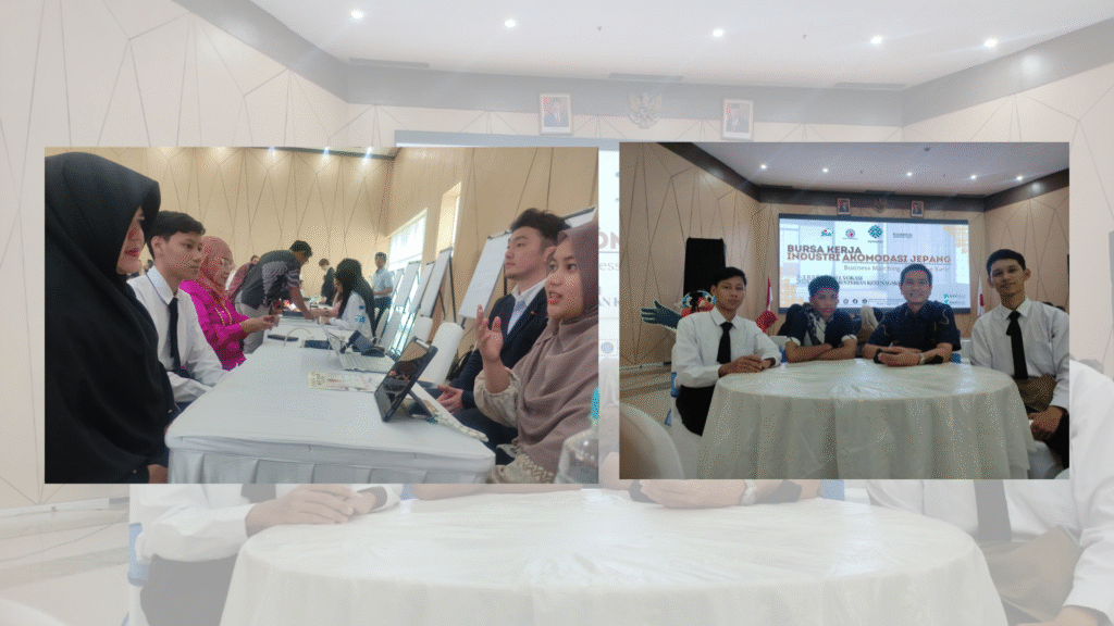 wawancara magang untuk Japan Ryonkan Hotel yang difasilitasi oleh Badan Vokasi Kemenaker dengan perwakilan industri dari Jepang, Mr. Takaya Ogawa.